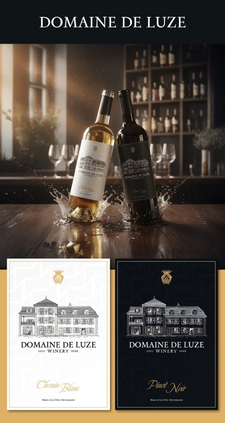 Ultimately, we’re trying to convey a message of consistency through variety. Whether a customer reaches for the light or the dark bottle, the golden crest and the unified layout tell them they are getting the same level of prestige. The gold foil border acts as a literal “frame” for the art, elevating the label from a simple sticker to a piece of curated design. We wanted these labels to look just as beautiful on a candle-lit dinner table as they do on a high-end retail shelf, speaking softly but firmly about their Swiss origins in La Côte.